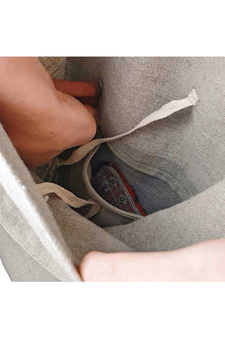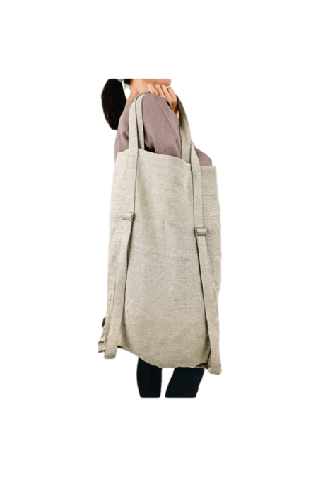 Lanena torba i ruksak u jednom. Možete ga nositi kao vrlo prostranu torbu za rame ili kao ruksak. S unutarnje strane nalazi se skriveni džep na patentni zatvarač u koji možete staviti sitnice poput ključeva, telefona,… Naramenice su podesive po dužini. Kvalitetna izrada i izdržljivi prirodni lan za dug život.